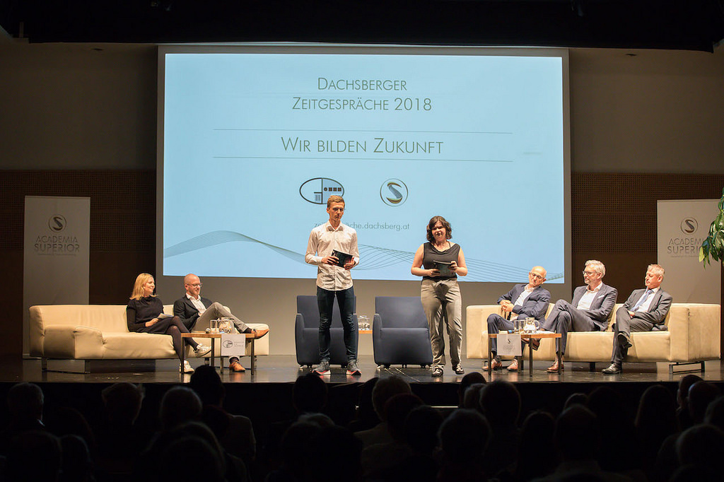 Antworten auf diese und andere Fragen suchten Schülerinnen und Schüler der 6N1 des Gymnasiums Dachsberg. Unterstützt wurden sie dabei vom Linzer Think Tank ACADEMIA SUPERIOR. Nach vielen Experteninterviews und Recherchearbeit präsentierten die Schüler das Ergebnis ihrer Suche bei den Dachsberger Zeitgesprächen 2018 in fünf Kurzvideos und diskutierten die Herausforderungen vor denen das Schulsystem steht mit Expertinnen und Experten. Nach der Veranstaltung konnte das Publikum noch auf einem „Marktplatz der Bildung“ mit den anwesenden Schülern und Bildungsexperten weiterdiskutieren.